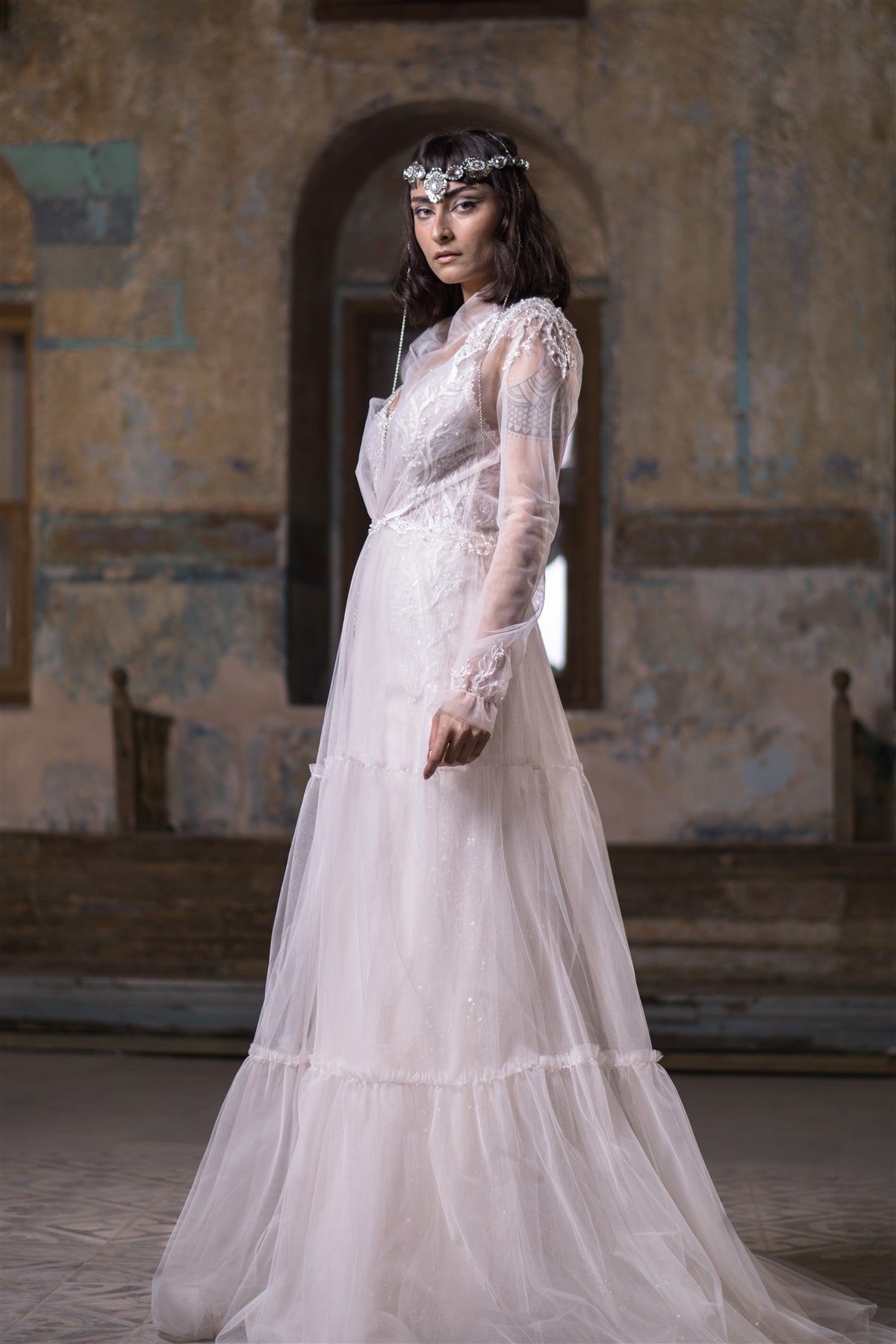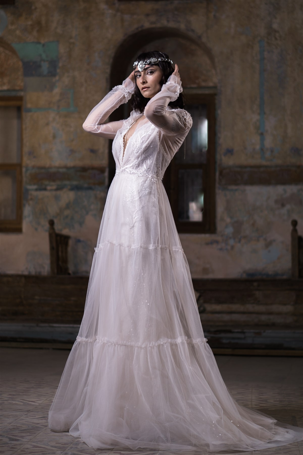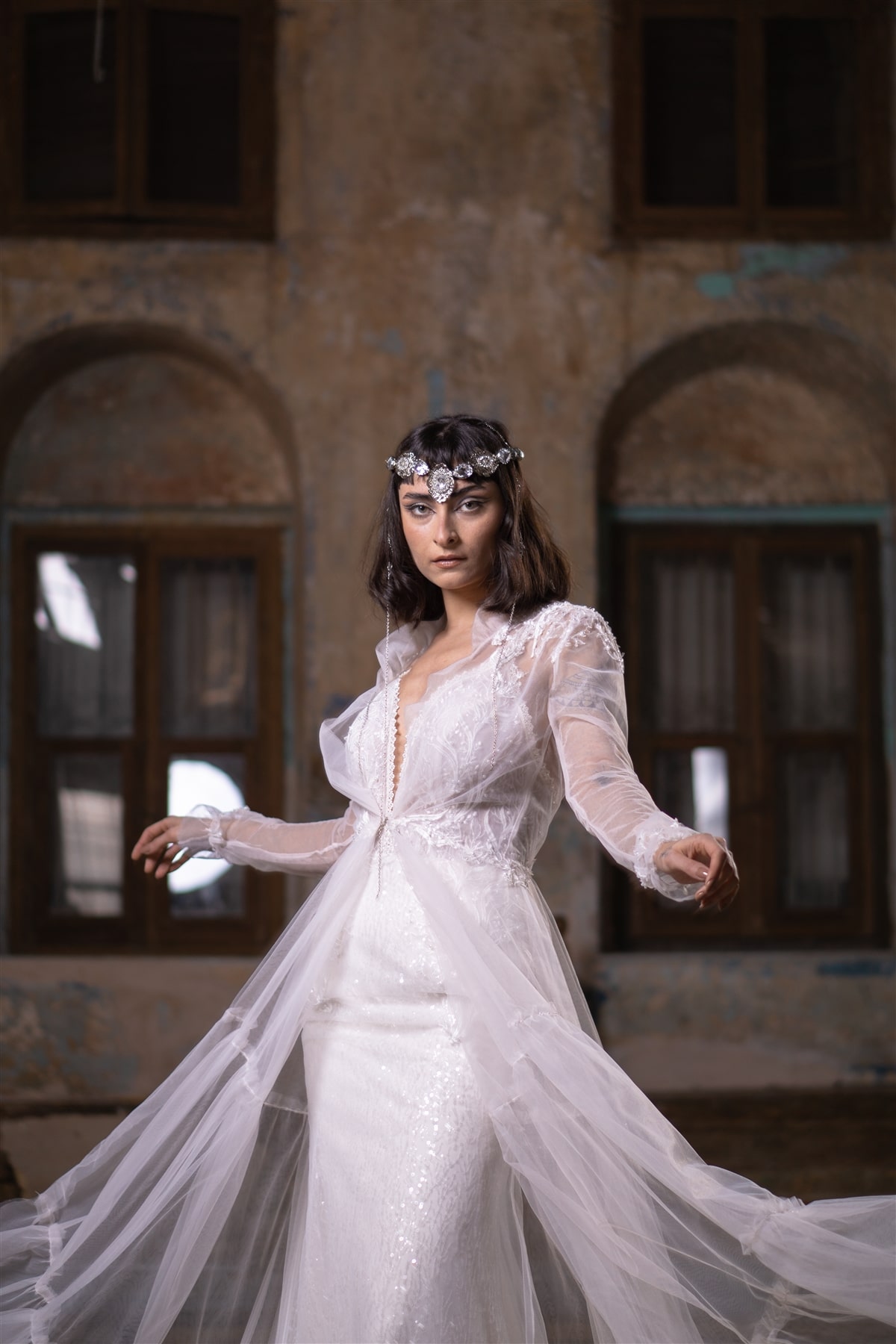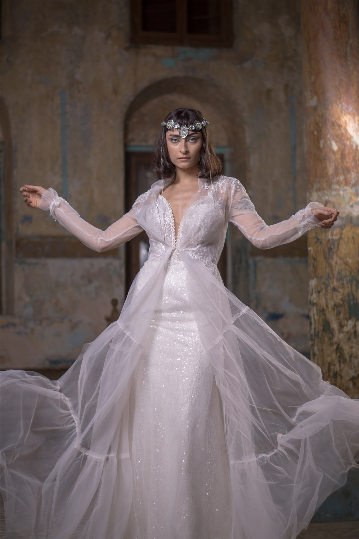 DANTEL DETAYLI ÜSTÜ PELERİNLİ GELİNLİK